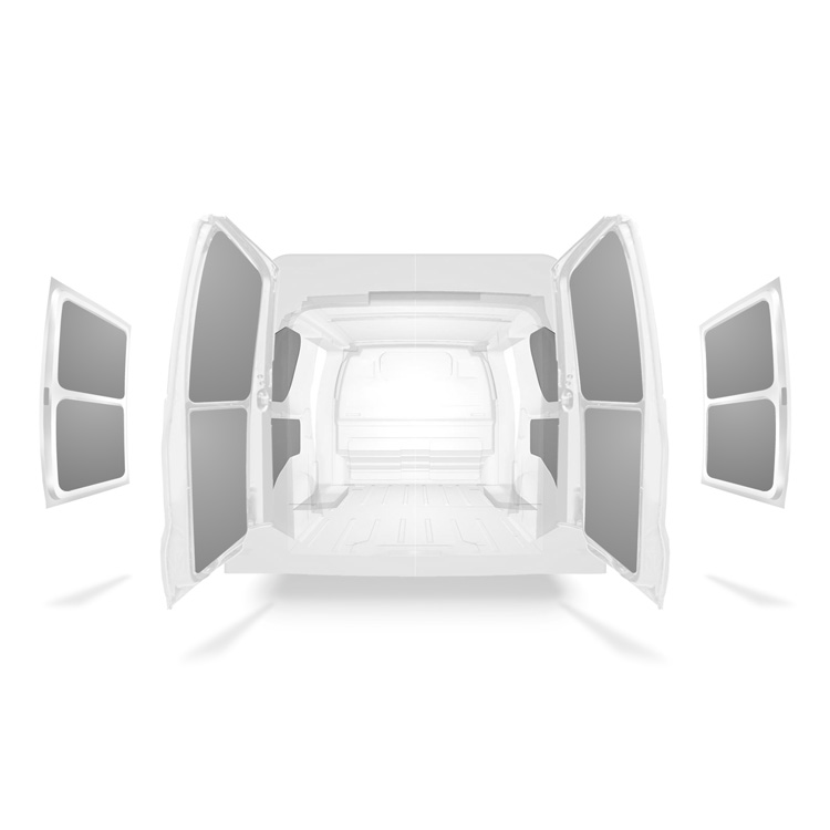 Let er tevens op dat het bevestigingsmateriaal dat wordt meegeleverd met elke kit bedoeld is voor installatie op de carrosserie. Beugels voor montage zonder boren in de vloer en muurrails worden afzonderlijk geleverd.