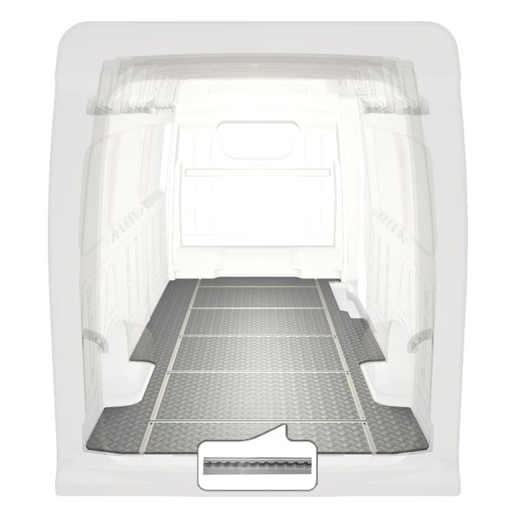 Onze lichte en robuuste vloeren met rails in de breedterichting zijn verkrijgbaar voor uiteenlopende modellen en zijn voorzien van een aluminiumplaat met antislip en ladingrails (in lengte- en breedterichting) voor het snel en veilig installeren van inrichtingssystemen en andere accessoires. De vloer wordt zonder boren met zeer sterke lijm gemonteerd. Dit is sterker dan moeren en bouten en zorgt dat de restwaarde van het voertuig behouden blijft.