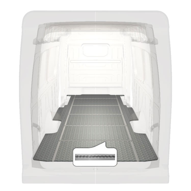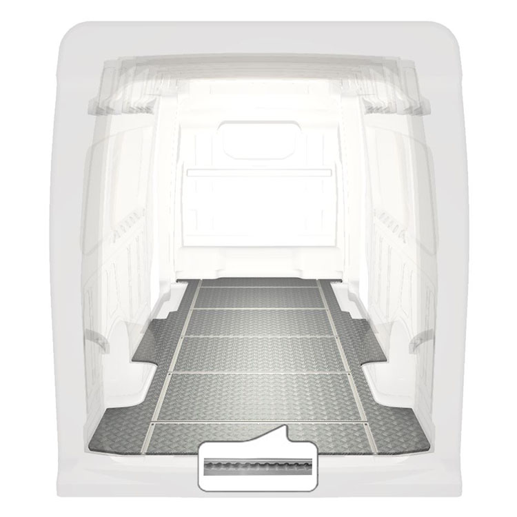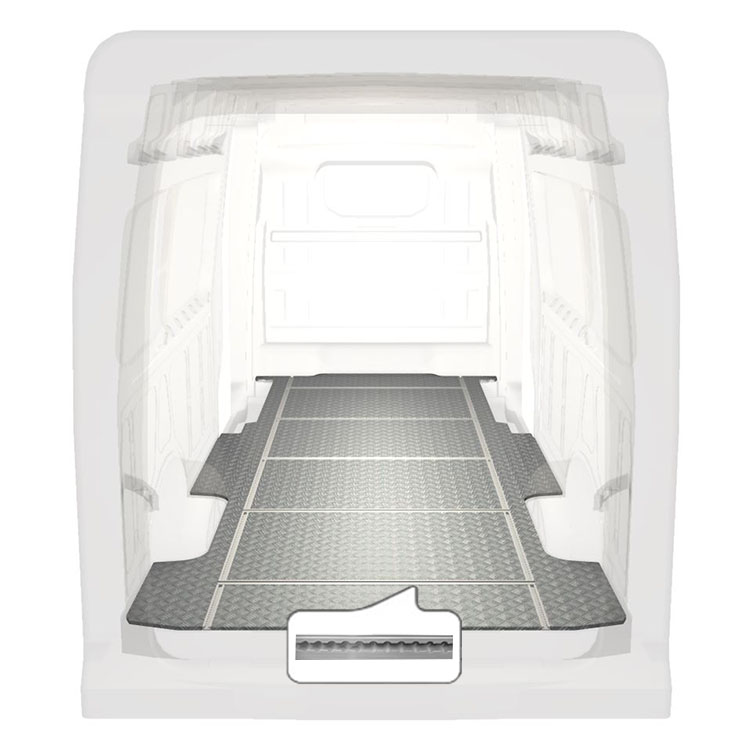 Onze lichte en robuuste vloeren met rails in de breedterichting zijn verkrijgbaar voor uiteenlopende modellen en zijn voorzien van een aluminiumplaat met antislip en ladingrails (in lengte- en breedterichting) voor het snel en veilig installeren van inrichtingssystemen en andere accessoires. De vloer wordt zonder boren met zeer sterke lijm gemonteerd. Dit is sterker dan moeren en bouten en zorgt dat de restwaarde van het voertuig behouden blijft.