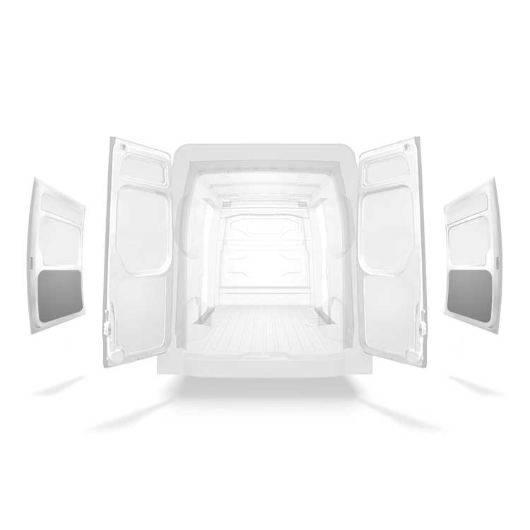 Onze voorgesneden zijportierbekleding is verkrijgbaar voor verschillende portiervormen en configuraties voor de meeste, commercieel verkrijgbare voertuigen. De portierbekleding is licht en ontwikkeld voor een professionele afwerking en is verkrijgbaar als volledige bekleding om het complete portier te bedekken of om tussen de portierstijlen te passen. De portierbekleding kan worden gemonteerd zonder het portier te beschadigen. Er wordt een zeer sterke lijm gebruikt, maar ook traditionele schroeven zijn mogelijk.