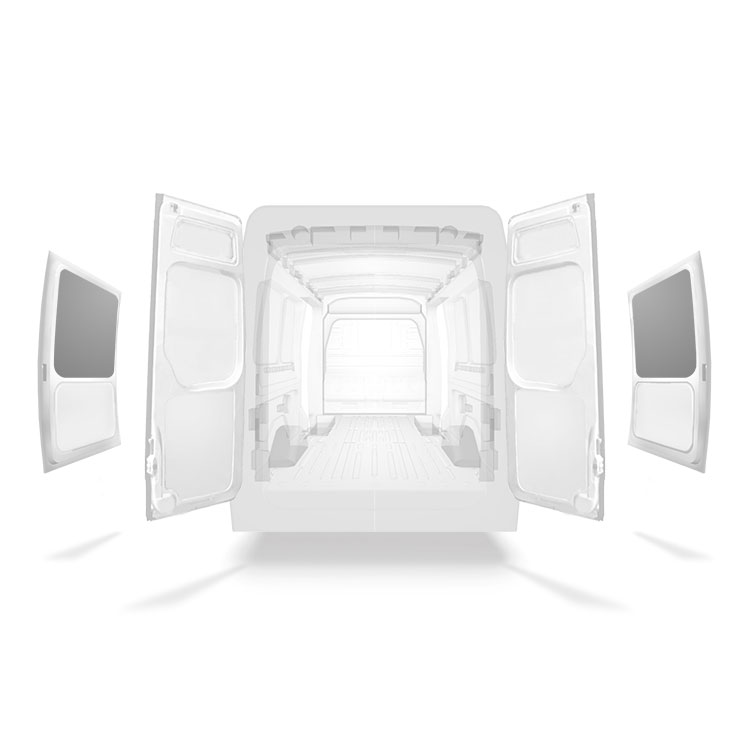 Onze voorgesneden zijportierbekleding is verkrijgbaar voor verschillende portiervormen en configuraties voor de meeste, commercieel verkrijgbare voertuigen. De portierbekleding is licht en ontwikkeld voor een professionele afwerking en is verkrijgbaar als volledige bekleding om het complete portier te bedekken of om tussen de portierstijlen te passen. De portierbekleding kan worden gemonteerd zonder het portier te beschadigen. Er wordt een zeer sterke lijm gebruikt, maar ook traditionele schroeven zijn mogelijk.