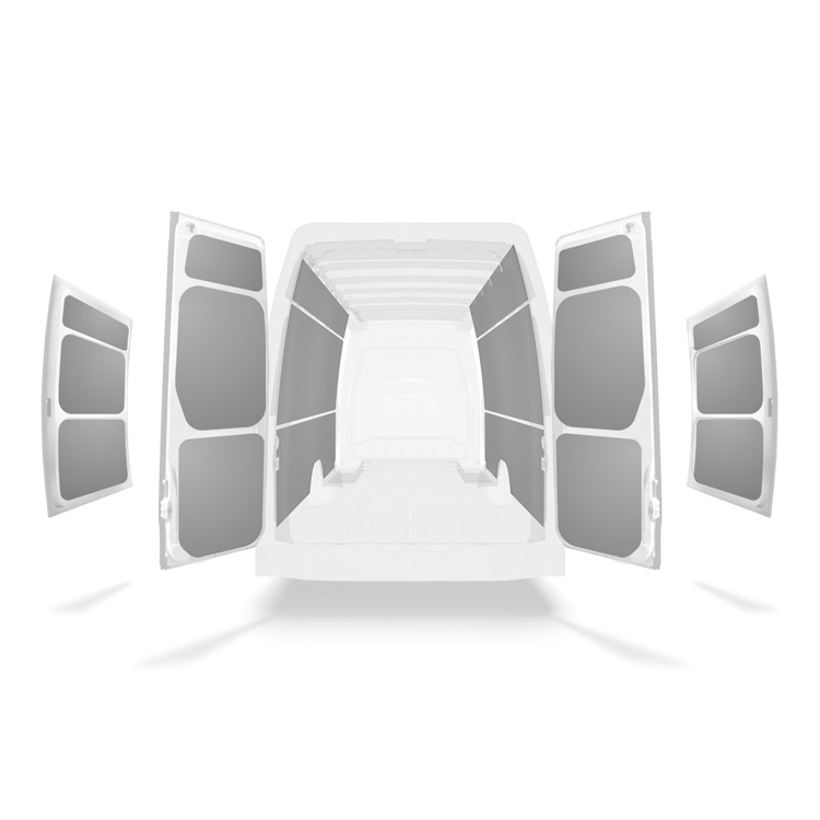 Let er tevens op dat het bevestigingsmateriaal dat wordt meegeleverd met elke kit bedoeld is voor installatie op de carrosserie. Beugels voor montage zonder boren in de vloer en muurrails worden afzonderlijk geleverd.