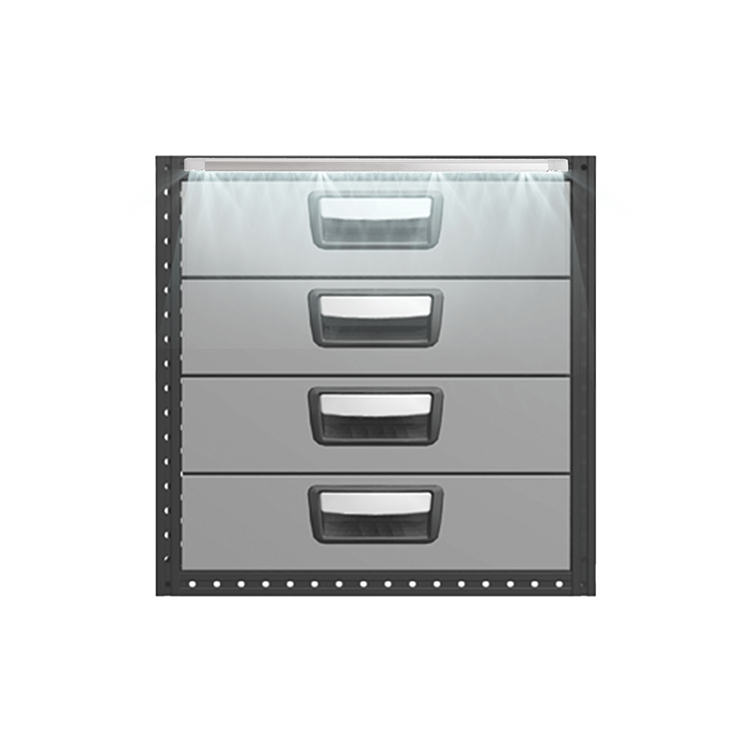 De ladeblokken zijn modulair in diepte, breedte en hoogte en kunnen eenvoudig met de overige producten en ladeblokken uit het assortiment worden gecombineerd. Het frame heeft unieke en geïntegreerde T-rails die kunnen worden gebruikt om lading vast te zetten, om accessoires te monteren en voor een flexibele, opliggende montage.  Een lade is standaard uitgerust met kogellagerrails. De laden kunnen 100% worden uitgetrokken en zijn voorzien van veiligheidsstoppen. Voor een optimale gewichtsbalans kunt u optioneel gebruikmaken van afdekplaten en gereedschapspanelen.