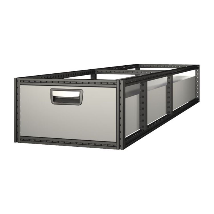 De extra diepe laden zijn ontworpen voor zware, omvangrijke voorwerpen en hebben een draagvermogen van 80 kg per lade, met een maximum van 200 kg per ladeblok. Als er rubberen versterkingsplaten worden gebruikt, wordt het draagvermogen verhoogd tot 100 kg per lade. De laden kunnen ongeveer 80 procent worden uitgetrokken en worden geleverd in dieptes tot 2 m. U kunt ze vrij combineren, zodat ze perfect bij uw lading en voertuig passen. De laden zijn standaard voorzien van kogellagers en een CRP (Crash Restraint Panel). Dit laatste voorkomt dat zware ladingen naar voren worden gestuwd in het geval van een ongeluk.
