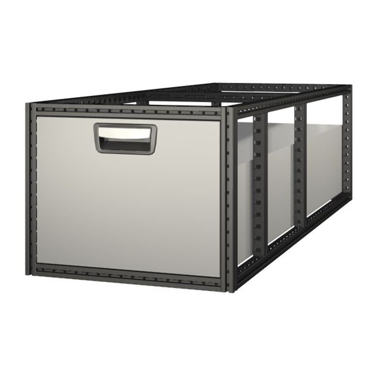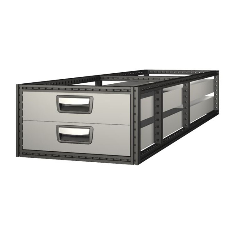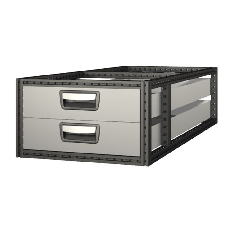 De extra diepe laden zijn ontworpen voor zware, omvangrijke voorwerpen en hebben een draagvermogen van 80 kg per lade, met een maximum van 200 kg per ladeblok. Als er rubberen versterkingsplaten worden gebruikt, wordt het draagvermogen verhoogd tot 100 kg per lade. De laden kunnen ongeveer 80 procent worden uitgetrokken en worden geleverd in dieptes tot 2 m. U kunt ze vrij combineren, zodat ze perfect bij uw lading en voertuig passen. De laden zijn standaard voorzien van kogellagers en een CRP (Crash Restraint Panel). Dit laatste voorkomt dat zware ladingen naar voren worden gestuwd in het geval van een ongeluk.