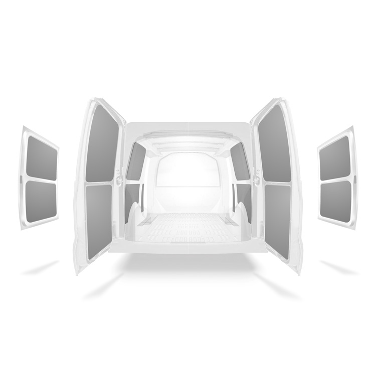 Let er tevens op dat het bevestigingsmateriaal dat wordt meegeleverd met elke kit bedoeld is voor installatie op de carrosserie. Beugels voor montage zonder boren in de vloer en muurrails worden afzonderlijk geleverd.