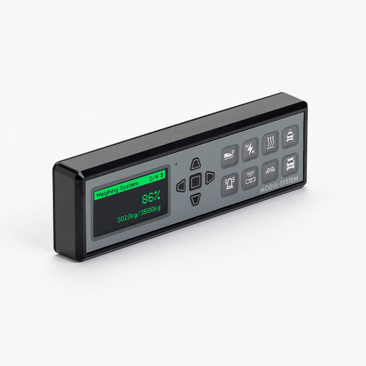 Display schakelpaneel met OLED scherm ontworpen voor bevestiging in de cabine van het voertuig. Verlichte schakelaars maken het voor de berijder eenvoudig te zien welke accessoires aan zijn.
