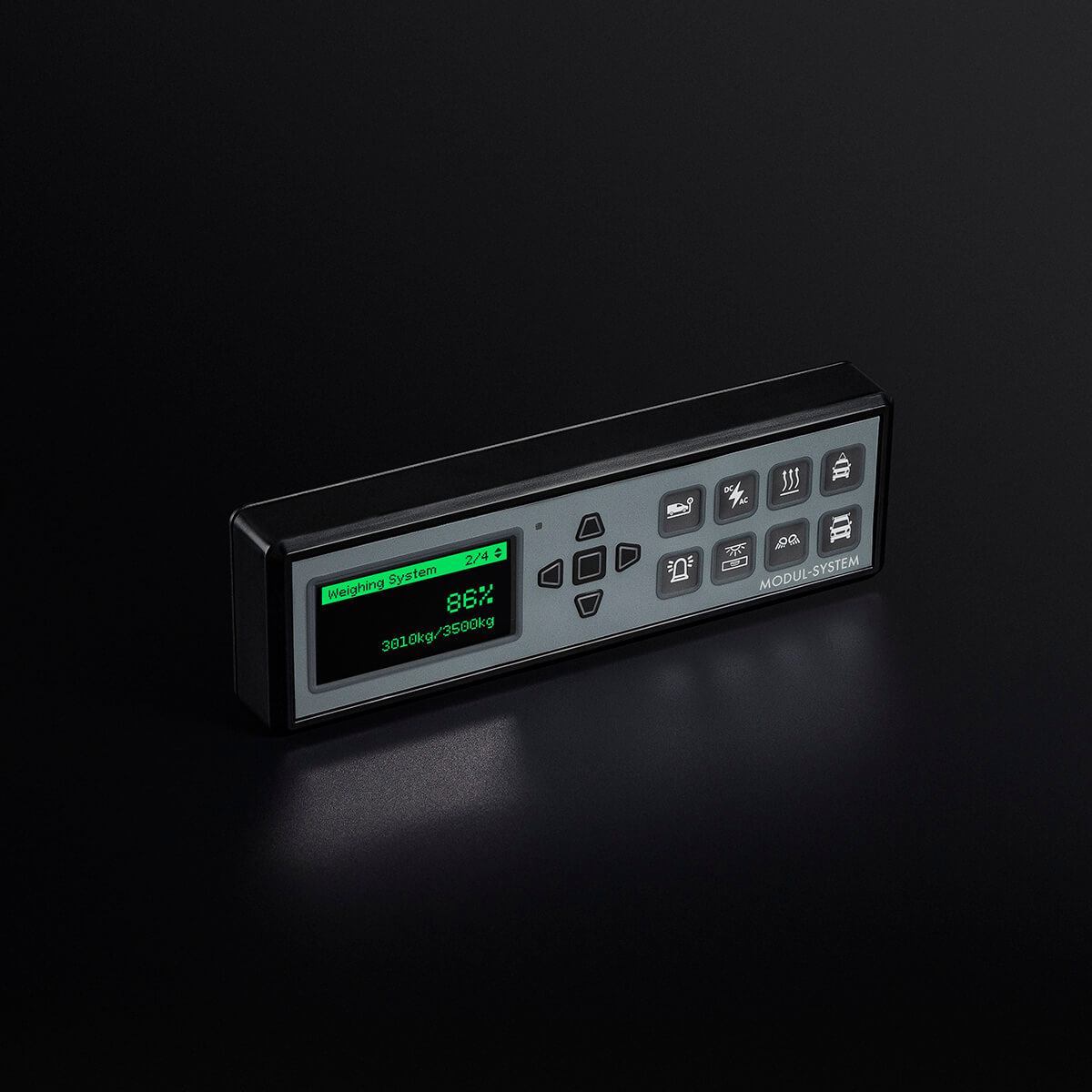 Display schakelpaneel met OLED scherm ontworpen voor bevestiging in de cabine van het voertuig. Verlichte schakelaars maken het voor de berijder eenvoudig te zien welke accessoires aan zijn.