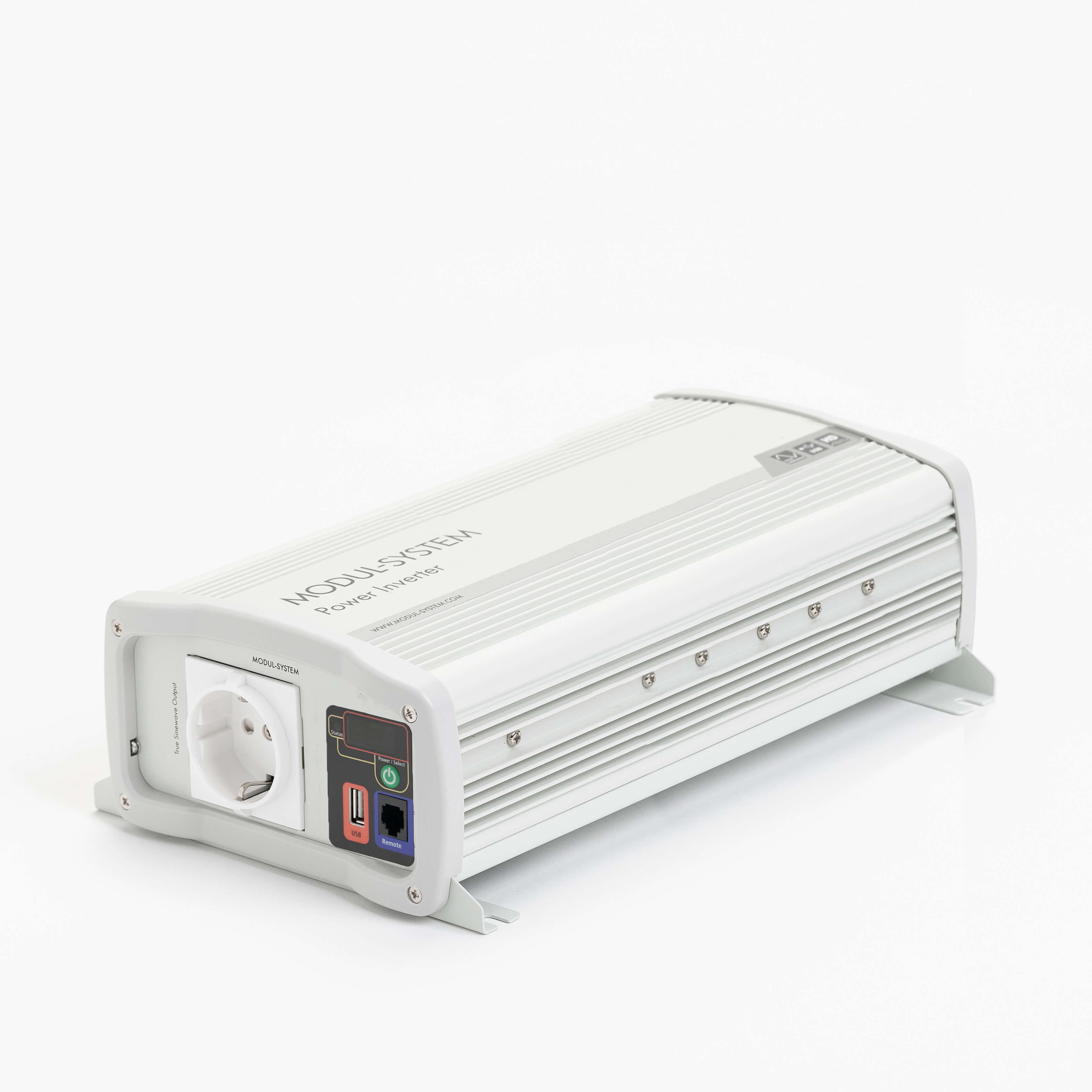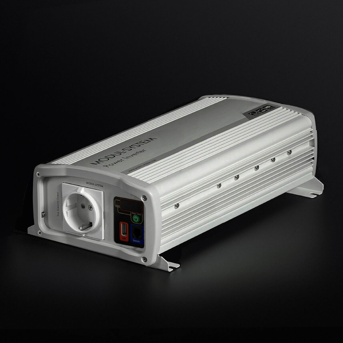De omvormer heeft een scherm waarop de batterijstatus en laadmeting wordt weergegeven, een EU-stroomaansluiting en een usb-poort om usb-apparaten op te laden. Geïntegreerde bevestigingspunten en hoogwaardige gelijkstroomaansluitingen zorgen voor een eenvoudige installatie.