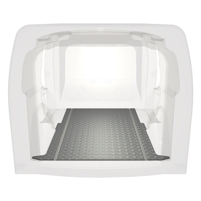Lichtgewicht, robuuste extra lange vloer voor een Opel Combo / Fiat Doblò met antislip-instaplijst van aluminium en cargorails (in de lengte) voor een snelle en veilige installatie van inrichtingssystemen en andere accessoires.