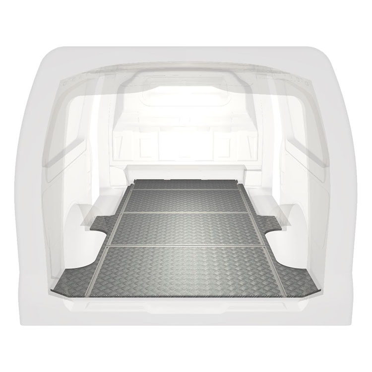 De vloer wordt zonder boren met zeer sterke lijm gemonteerd. Dit geeft een sterkere installatie dan moeren en bouten, terwijl de restwaarde van het voertuig behouden blijft.