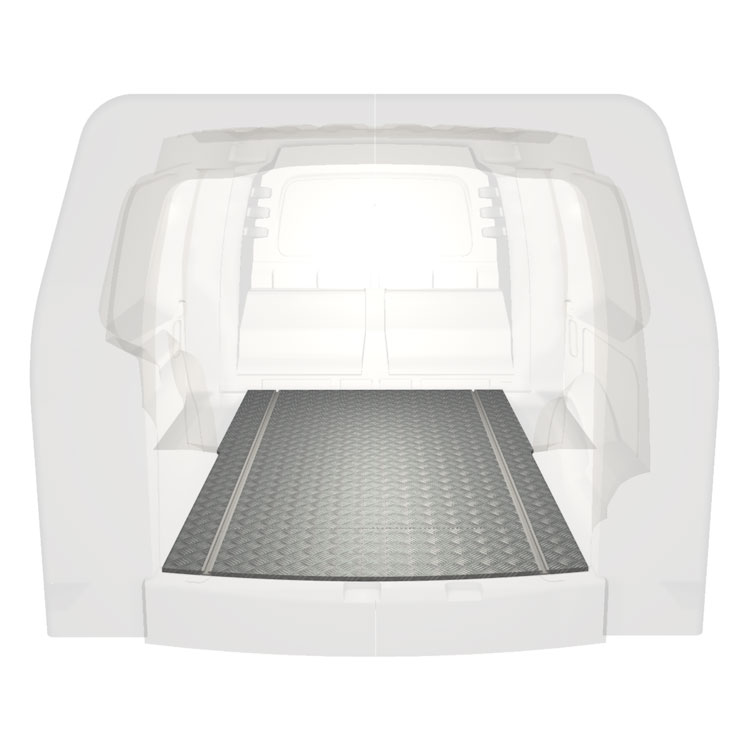 Lichtgewicht, robuuste standaard-bestelwagenvloer voor een Volkswagen Caddy Cargo Maxi 21- met antislip-instaplijst van aluminium en cargorails (in de lengte) voor een snelle en veilige installatie van inrichtingssystemen en andere accessoires.
