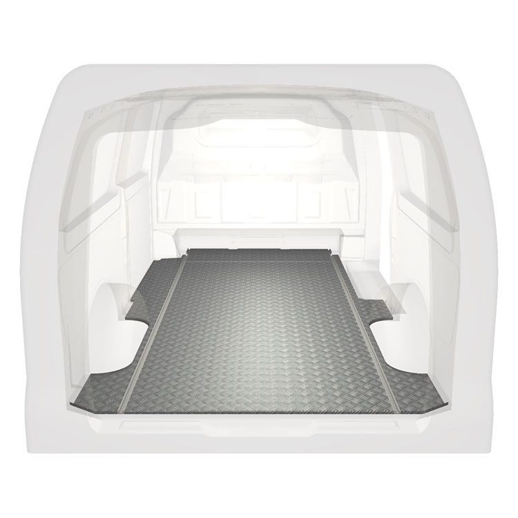 Lichtgewicht, robuuste extra lange vloer voor een Mercedes Vito met antislip-instaplijst van aluminium en cargorails (in de lengte) voor een snelle en veilige installatie van inrichtingssystemen en andere accessoires.