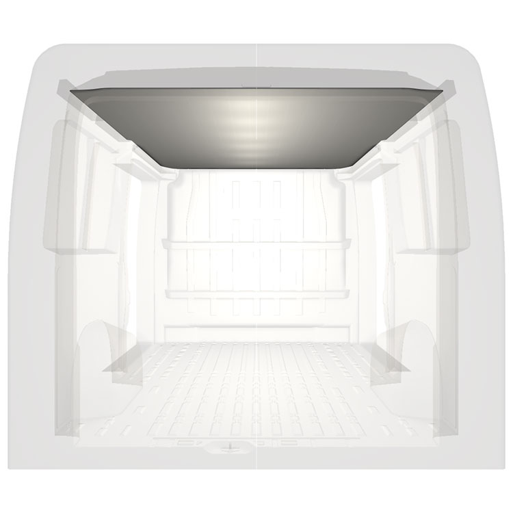 Lichtgewicht bekleding voor het dak van een Citroën Jumper / Peugeot Boxer / Fiat Ducato. De dakbekleding zorgt voor een lichte, professionele afwerking aan de binnenkant en een aangename werkomgeving.