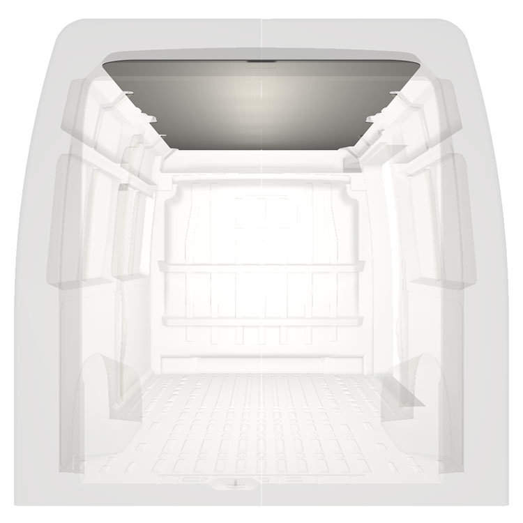 Lichtgewicht bekleding voor het dak van een Citroën Jumper / Peugeot Boxer / Fiat Ducato. De dakbekleding zorgt voor een lichte, professionele afwerking aan de binnenkant en een aangename werkomgeving.