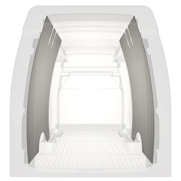 Om het gewicht te optimaliseren, past de voorgesneden bestelwagenbekleding alleen in de ruimte tussen de stijlen van het voertuig, zodat de bestelwagen niet wordt beschadigd en de ruimte optimaal wordt benut.