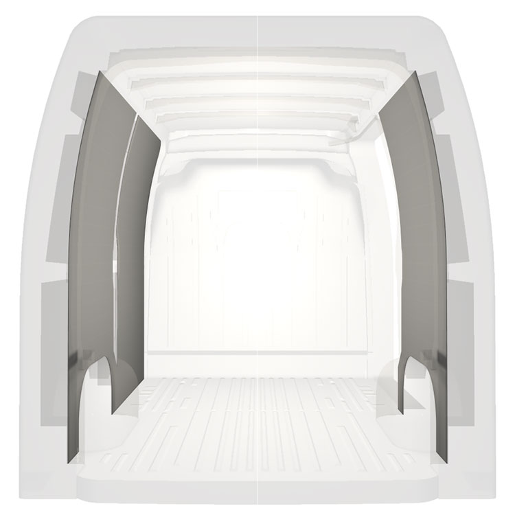Om het gewicht te optimaliseren, past de voorgesneden bestelwagenbekleding alleen in de ruimte tussen de stijlen van het voertuig, zodat de bestelwagen niet wordt beschadigd en de ruimte optimaal wordt benut.