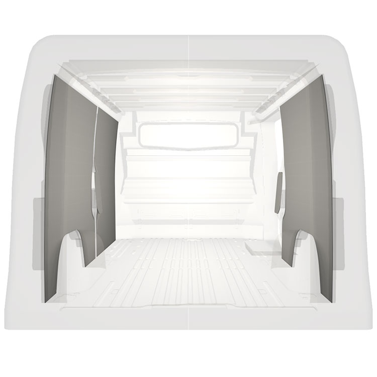 Lichtgewicht volledige bekleding voor de binnenwanden van een Renault Trafic / Opel Vivaro / Fiat Talento / Nissan NV300 met een zijportier aan de rechterkant.De bekleding zorgt voor een lichte, aangename werkomgeving en is makkelijk schoon te vegen.