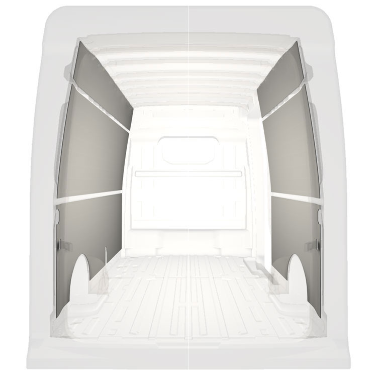 Om het gewicht te optimaliseren, past de voorgesneden bestelwagenbekleding alleen in de ruimte tussen de stijlen van het voertuig, zodat de bestelwagen niet wordt beschadigd en de ruimte optimaal wordt benut.