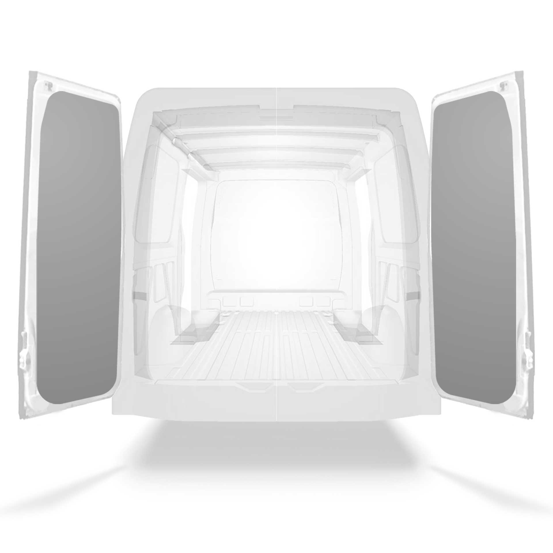 Deze voorgesneden achterportierbekleding voor bestelwagens is op maat ontworpen voor de volledige dubbele deuren van het voertuig.