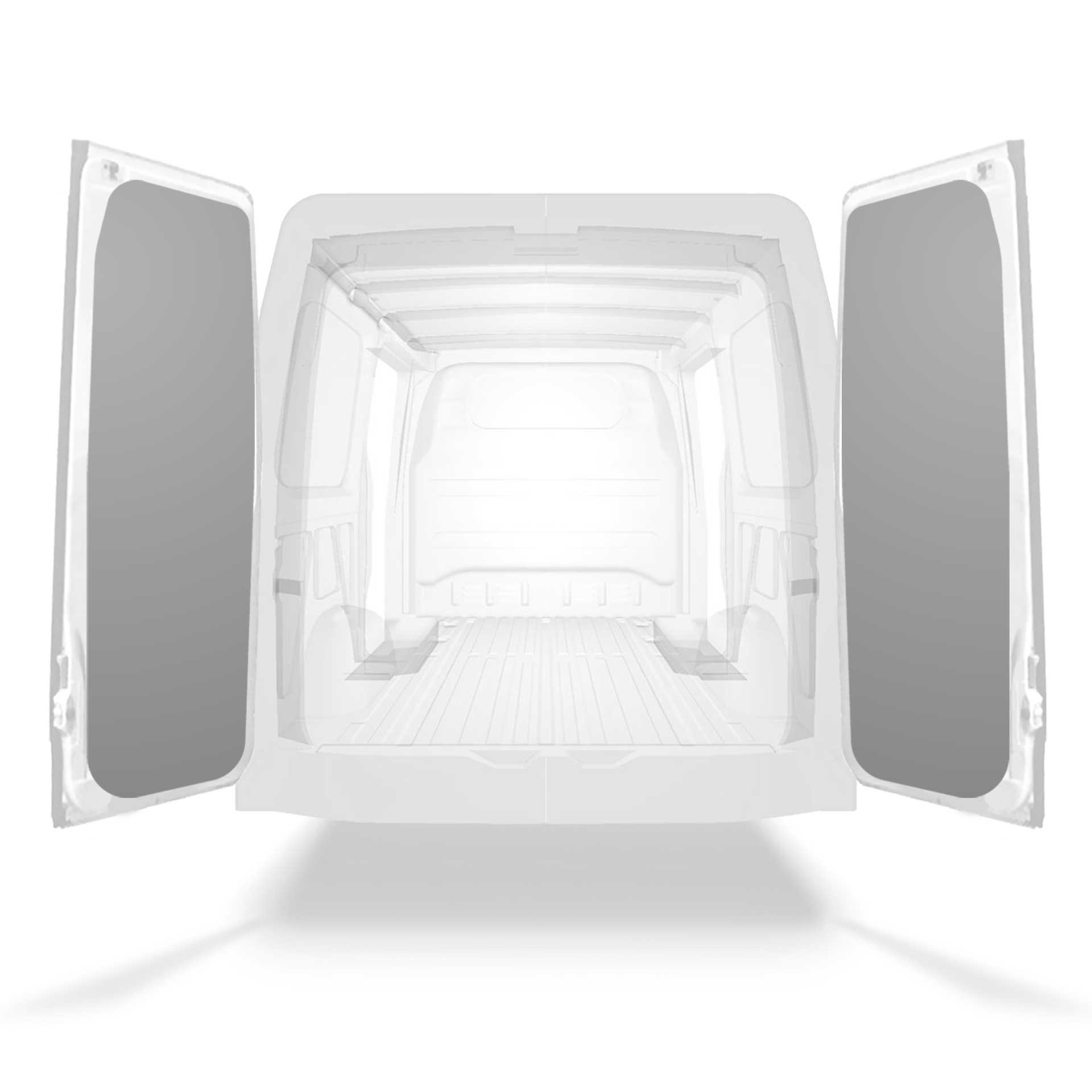Deze voorgesneden achterportierbekleding voor bestelwagens is op maat ontworpen voor de volledige dubbele deuren van het voertuig.