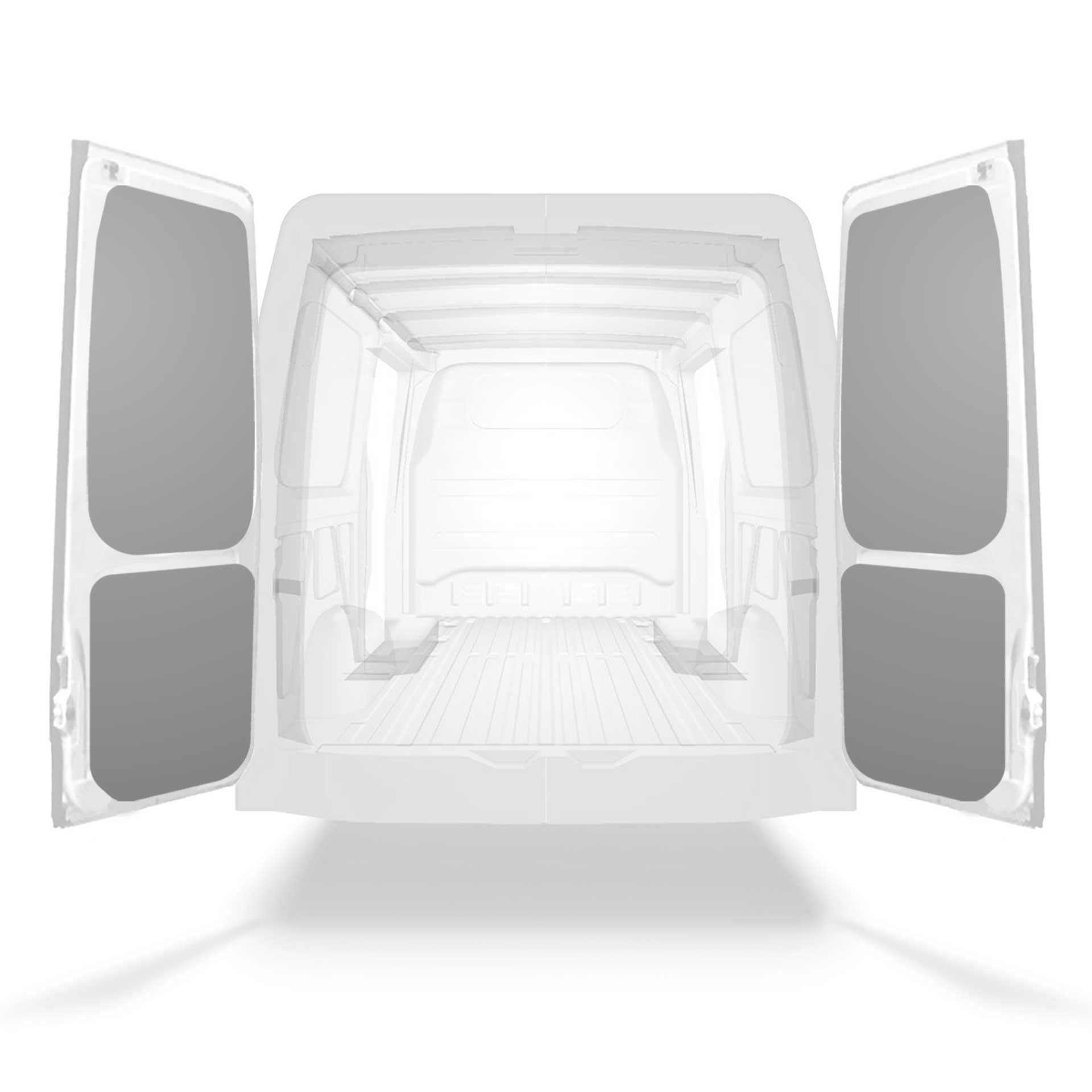 Deze voorgesneden achterportierbekleding voor bestelwagens is op maat ontworpen voor de gedeelten van de dubbele deuren van het voertuig.