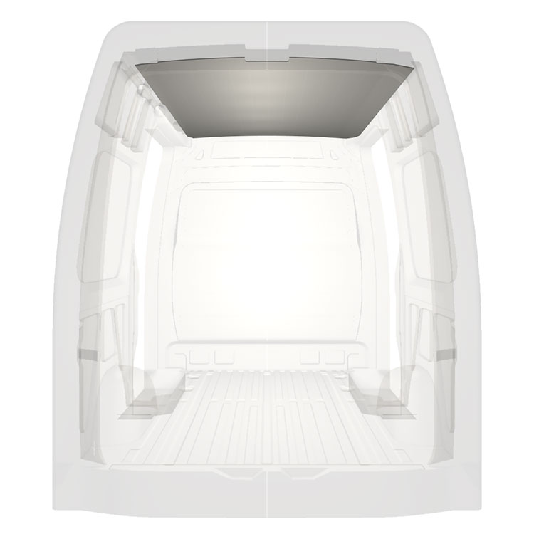 Lichtgewicht bekleding voor het dak van een Mercedes Sprinter. De dakbekleding zorgt voor een lichte, professionele afwerking aan de binnenkant en een aangename werkomgeving.