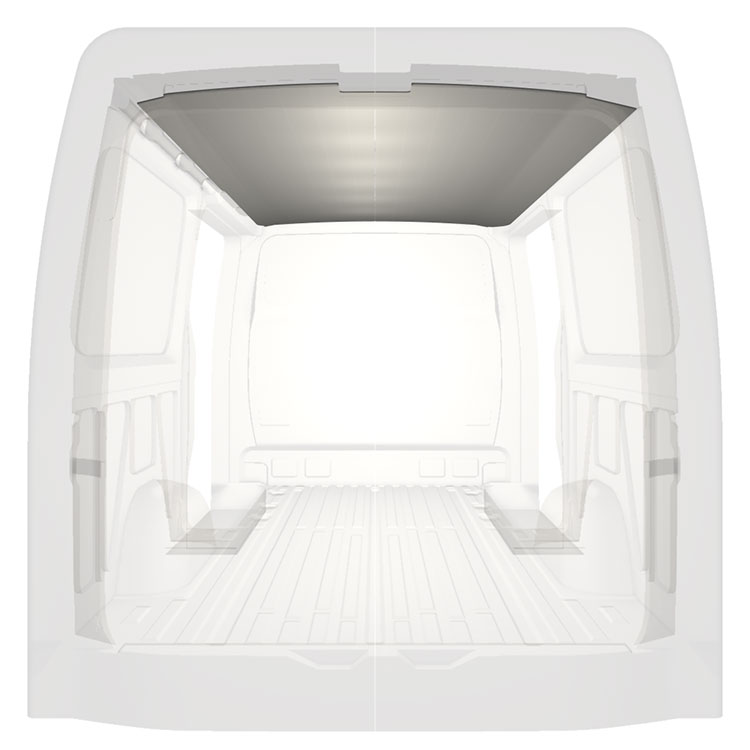 Lichtgewicht bekleding voor het dak van een Mercedes Sprinter. De dakbekleding zorgt voor een lichte, professionele afwerking aan de binnenkant en een aangename werkomgeving.
