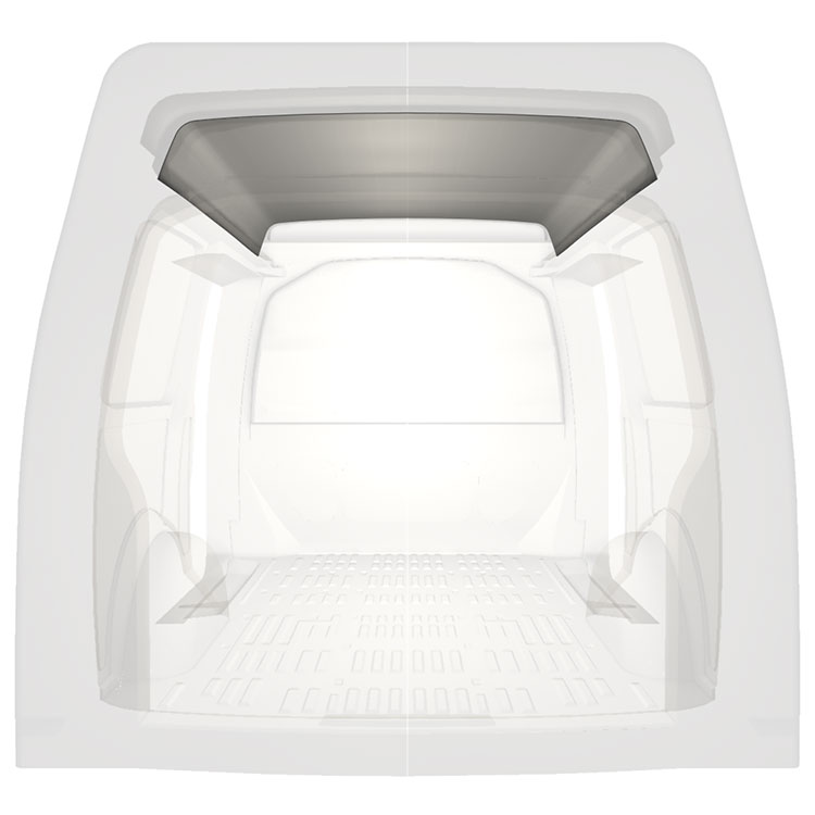 Lichtgewicht bekleding voor het dak van een Volkswagen Transporter T6. De dakbekleding zorgt voor een lichte, professionele afwerking aan de binnenkant en een aangename werkomgeving.