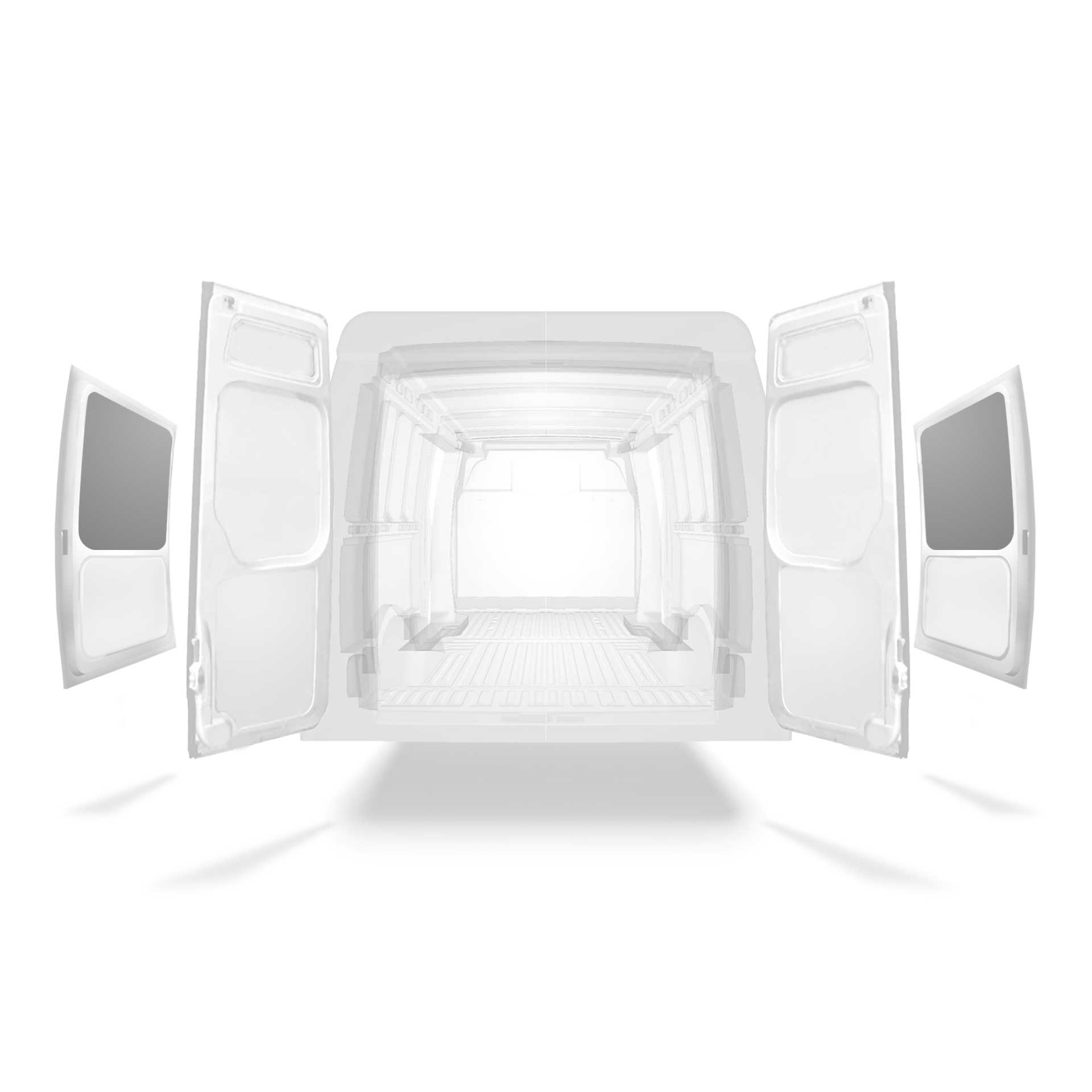 Lichtgewicht bekleding voor het bovenste gedeelte van het zijportier van een Iveco Daily met dubbele zijportieren. De bekleding vermindert slijtage van het interieur, en helpt de restwaarde van de bestelbus te behouden.