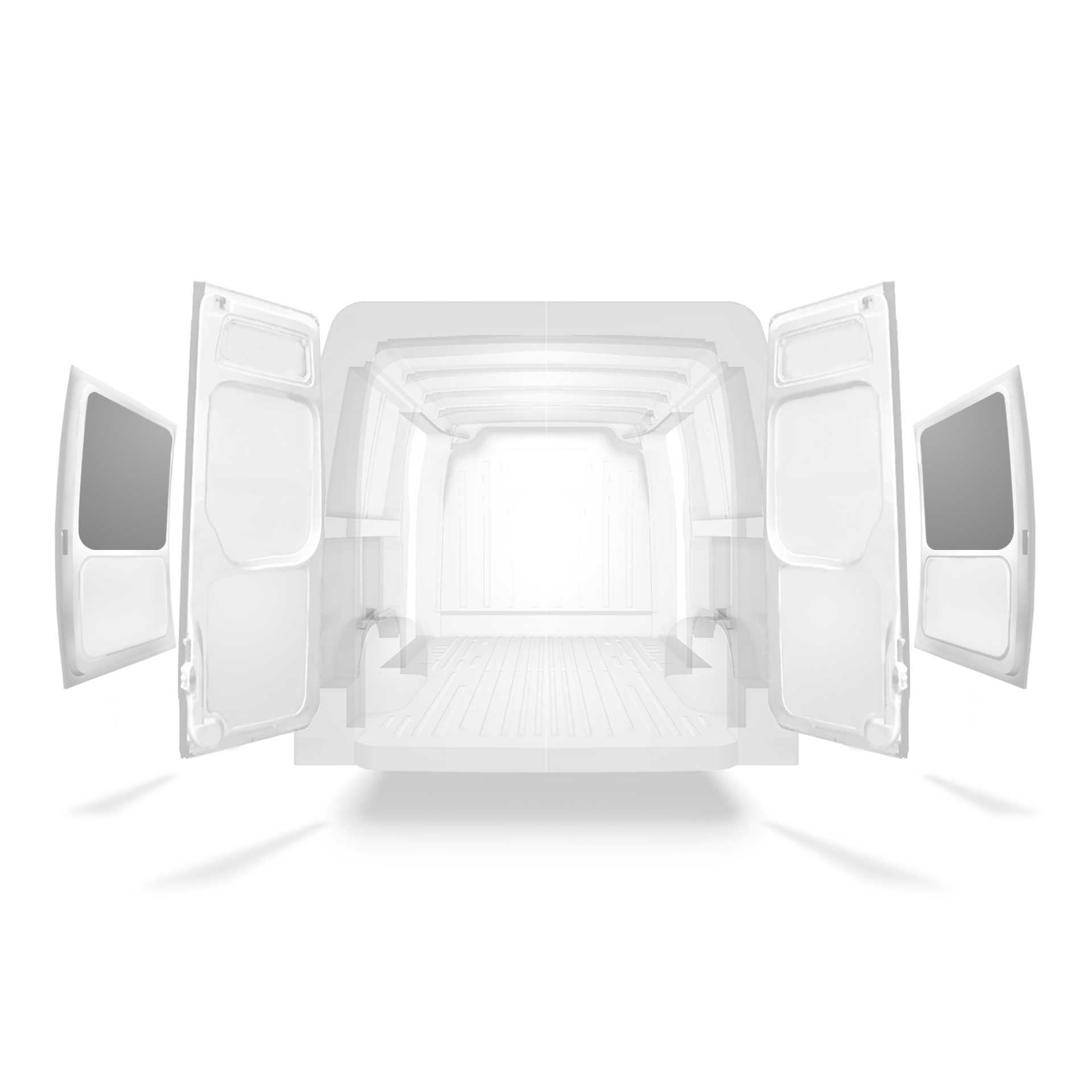 Lichtgewicht bekleding voor het bovenste gedeelte van het zijportier van een Renault Master / Opel Movano / Nissan NV400 met dubbele zijportieren. De bekleding vermindert slijtage van het interieur, en helpt de restwaarde van de bestelbus te behouden.