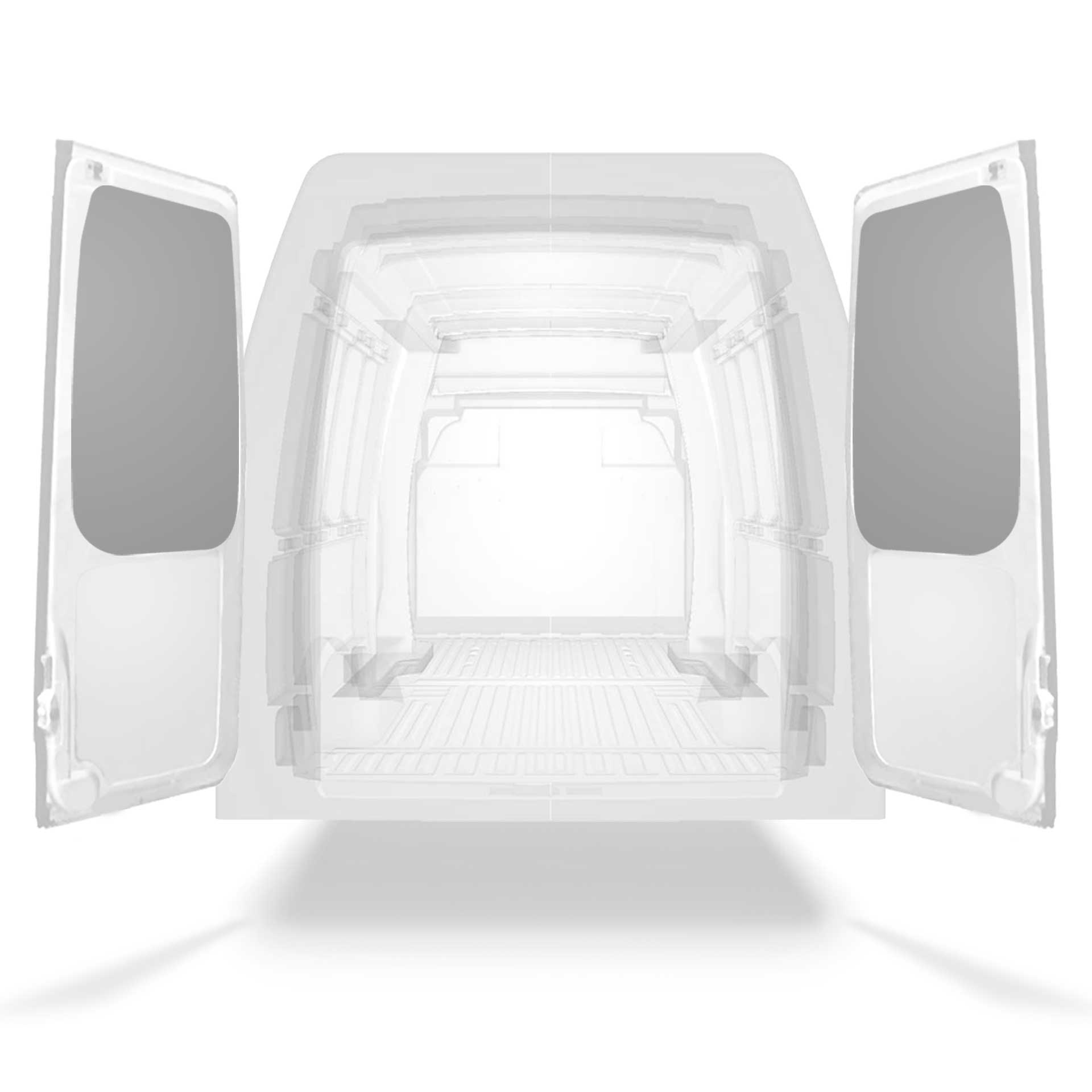 Deze voorgesneden achterportierbekleding voor bestelwagens is op maat ontworpen voor de bovenste gedeelten van de dubbele deuren van het voertuig.