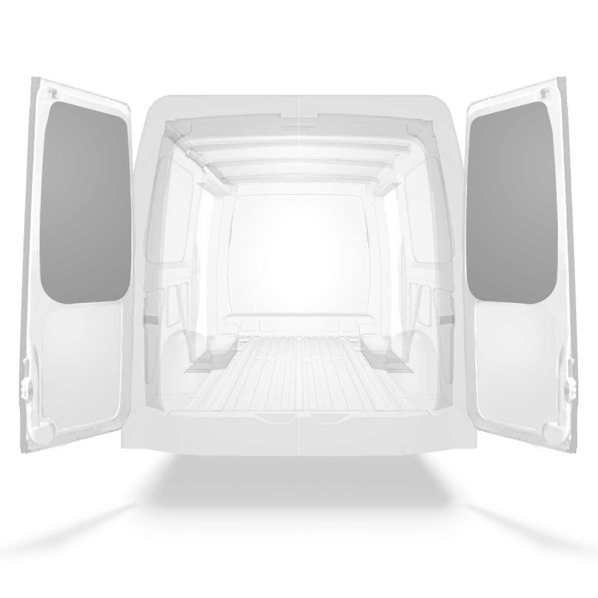 Deze voorgesneden achterportierbekleding voor bestelwagens is op maat ontworpen voor de bovenste gedeelten van de dubbele deuren van het voertuig.