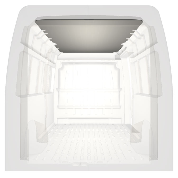 Lichtgewicht bekleding voor het dak van een Citroën Jumper / Peugeot Boxer / Fiat Ducato. De dakbekleding zorgt voor een lichte, professionele afwerking aan de binnenkant en een aangename werkomgeving.