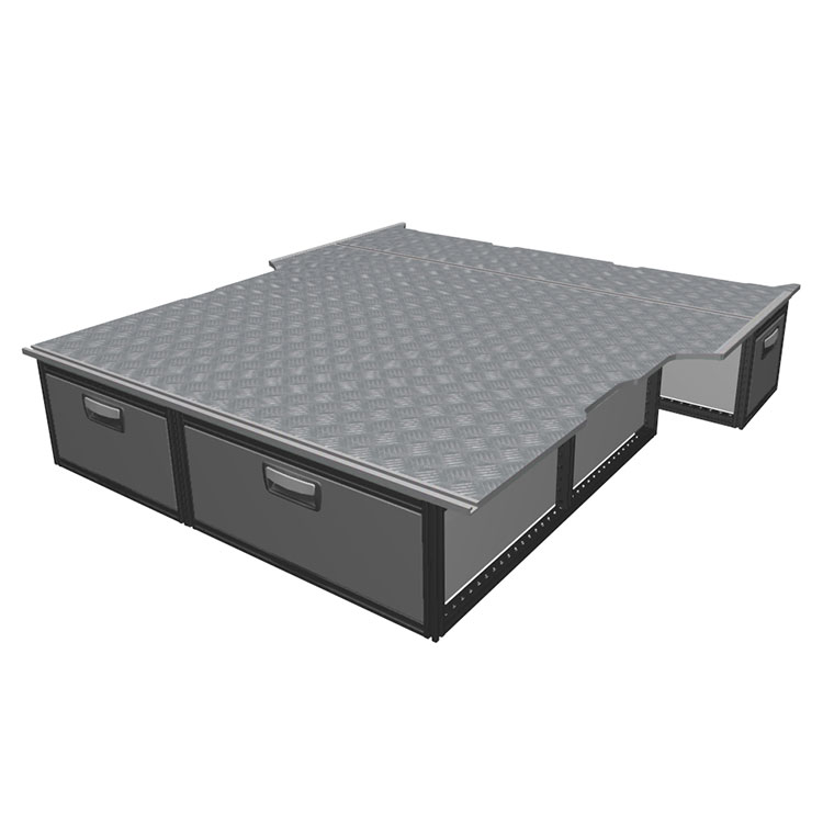 The kit is designed to be fitted on top of a wooden floor. The double floor is equipped with rails for easy installation of vehicle racking, and edging strips for a nice finish.