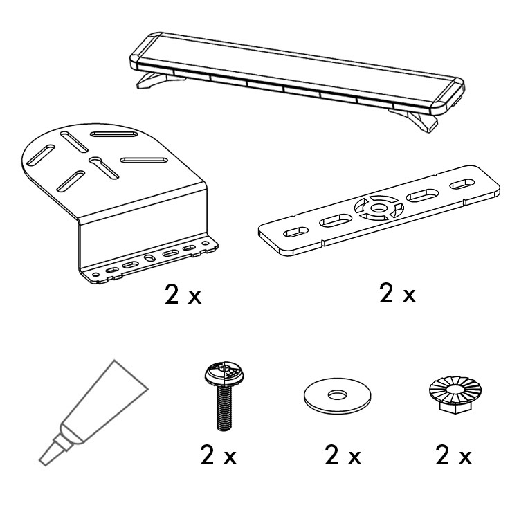 Kit bestaande uit een verlichtingsbalk en een complete set beugels voor rechtstreekse installatie op de OEM-bevestigingspunten van het voertuig. Door de geïntegreerde bevestigingspunten te gebruiken, hoeven er geen onnodige gaten in het voertuig te worden geboord, zodat er geen risico van corrosie is en de restwaarde van het voertuig wordt beschermd.
