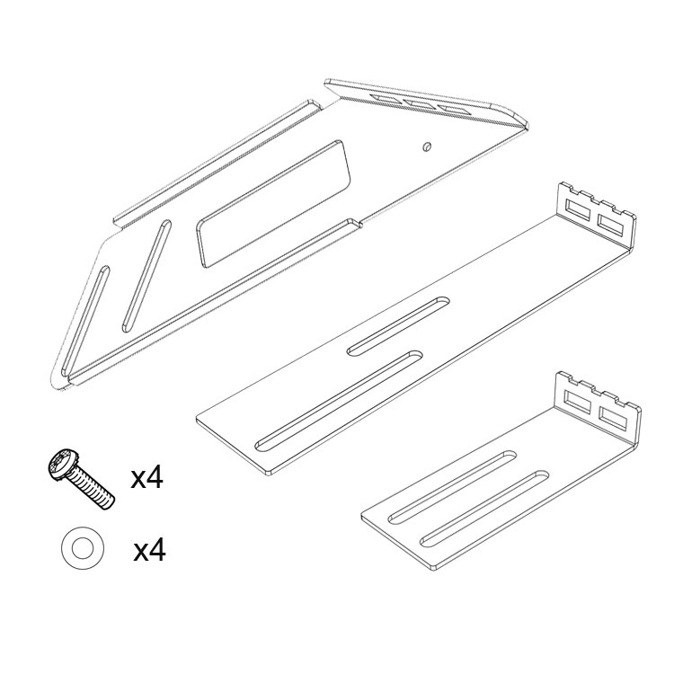 Please note that the floor installation brackets included are designed to fit the Modul-Floor, and the wall brackets are installed using rivets/screws/glue. Cut-outs in the plastic covers might be required.
