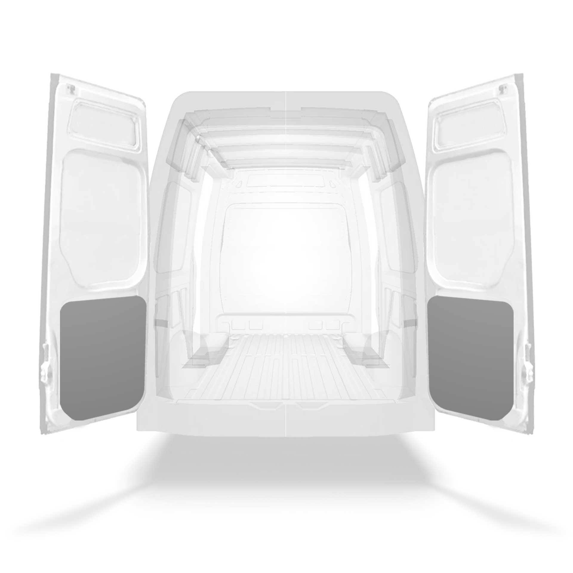 Deze voorgesneden achterportierbekleding voor bestelwagens is op maat ontworpen voor de onderste gedeelten van de dubbele deuren van het voertuig.