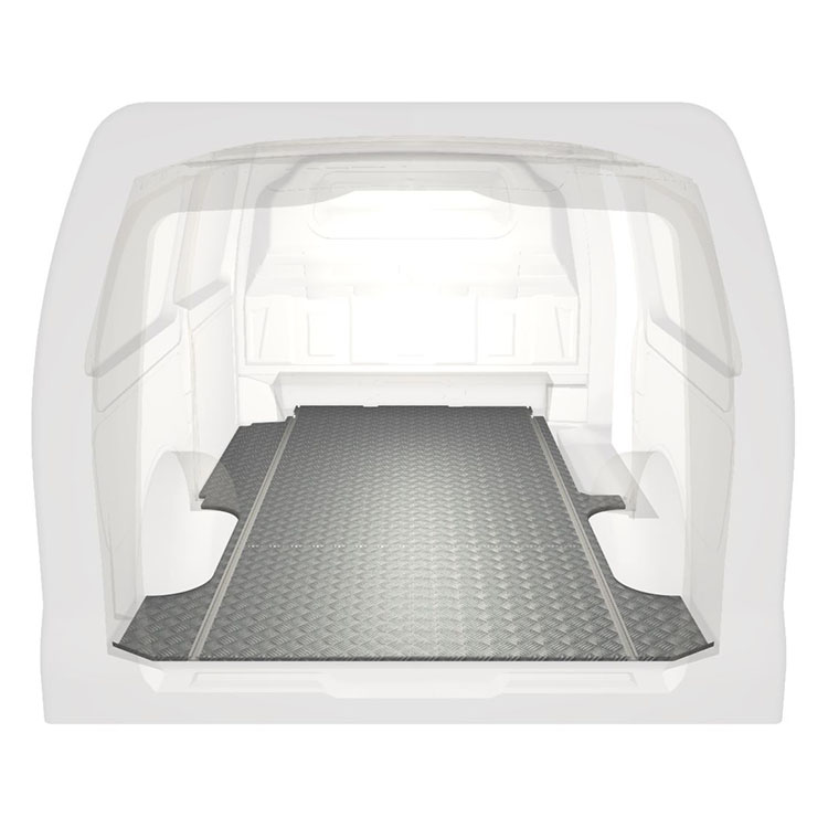 Lichtgewicht, robuuste standaard-bestelwagenvloer voor een Mercedes Vito met antislip-instaplijst van aluminium en cargorails (in de lengte) voor een snelle en veilige installatie van inrichtingssystemen en andere accessoires.