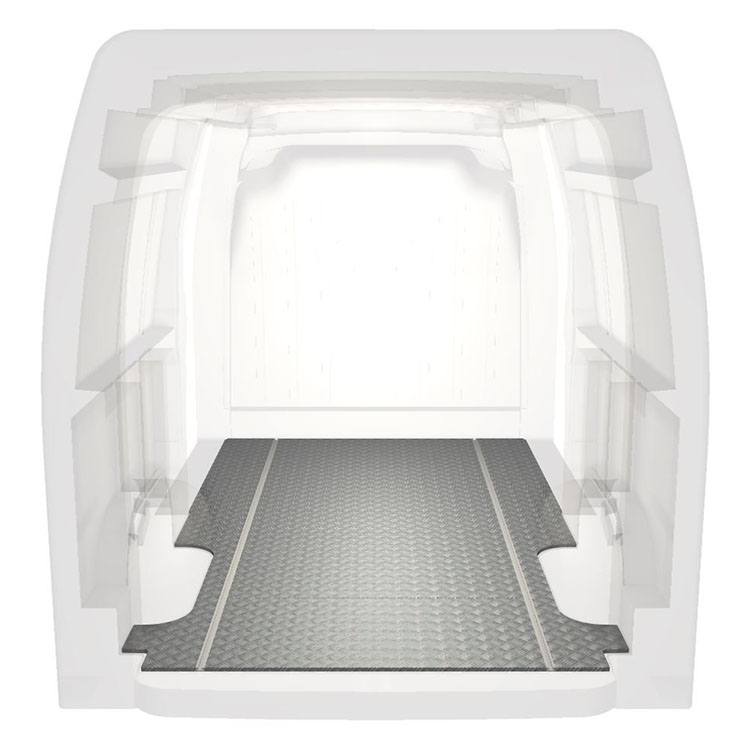 De vloer wordt zonder boren met zeer sterke lijm gemonteerd. Dit geeft een sterkere installatie dan moeren en bouten, terwijl de restwaarde van het voertuig behouden blijft.