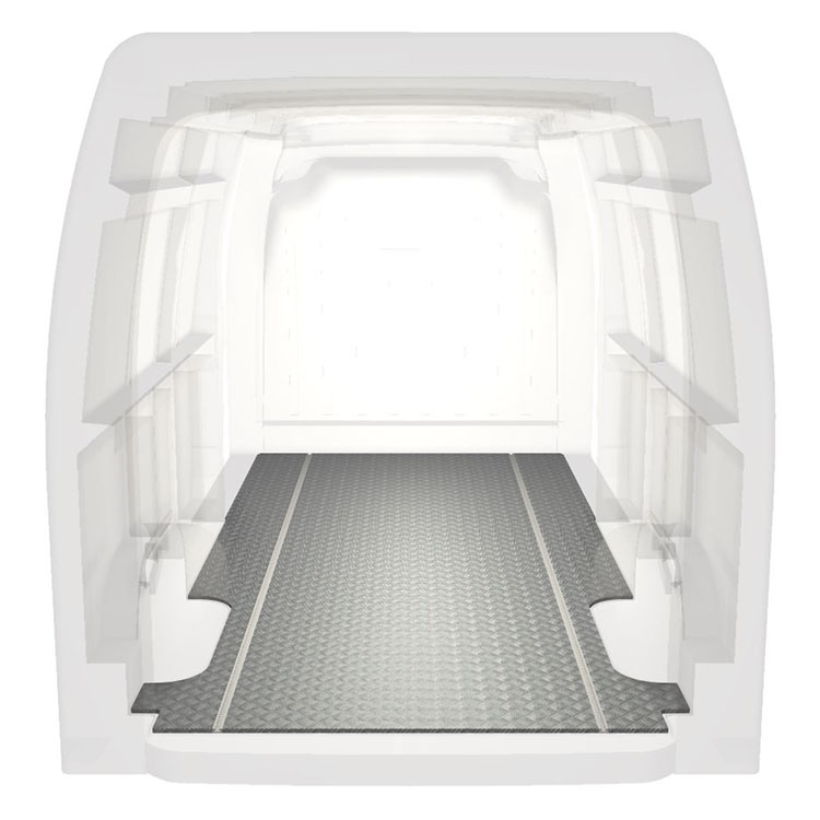 Lichtgewicht, robuuste extra lange vloer voor een Renault Master / Opel Movano / Nissan NV400 met antislip-instaplijst van aluminium en cargorails (in de lengte) voor een snelle en veilige installatie van inrichtingssystemen en andere accessoires.