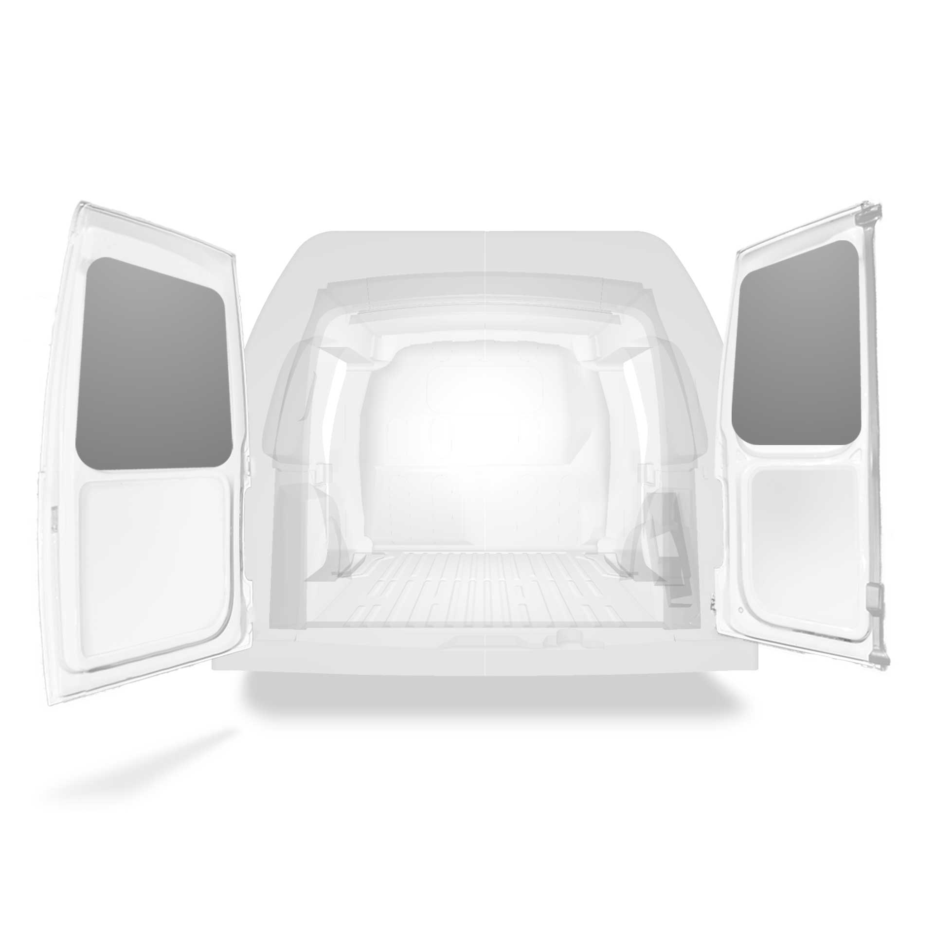 Deze voorgesneden achterportierbekleding voor bestelwagens is op maat ontworpen voor de bovenste gedeelten van de dubbele deuren van het voertuig.