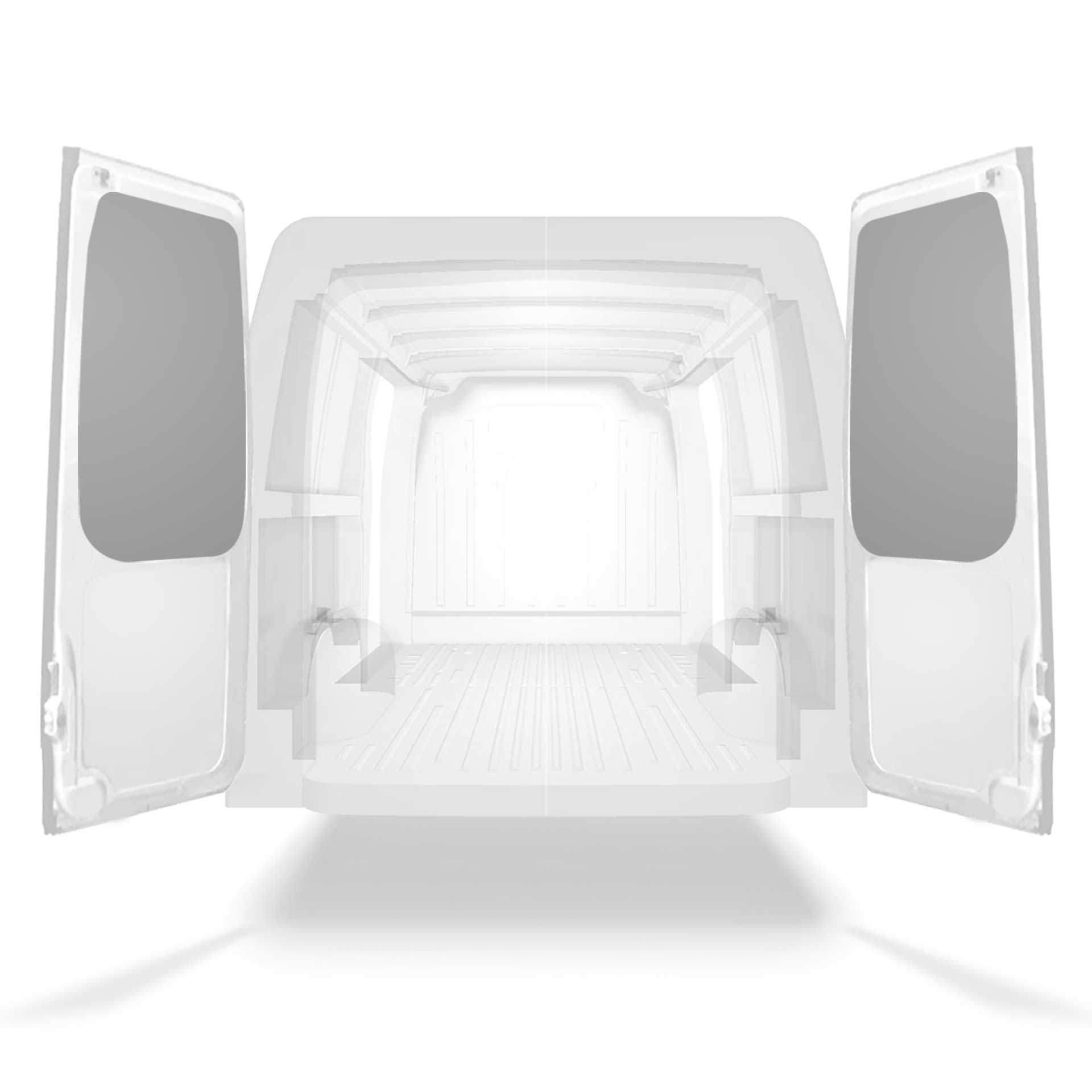 Deze voorgesneden achterportierbekleding voor bestelwagens is op maat ontworpen voor de bovenste gedeelten van de dubbele deuren van het voertuig.