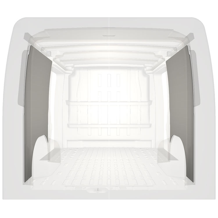 Lichtgewicht volledige bekleding voor de binnenwanden van een Citroën Jumper / Peugeot Boxer / Fiat Ducato met dubbele zijportieren. De bekleding zorgt voor een lichte, aangename werkomgeving en is makkelijk schoon te vegen.