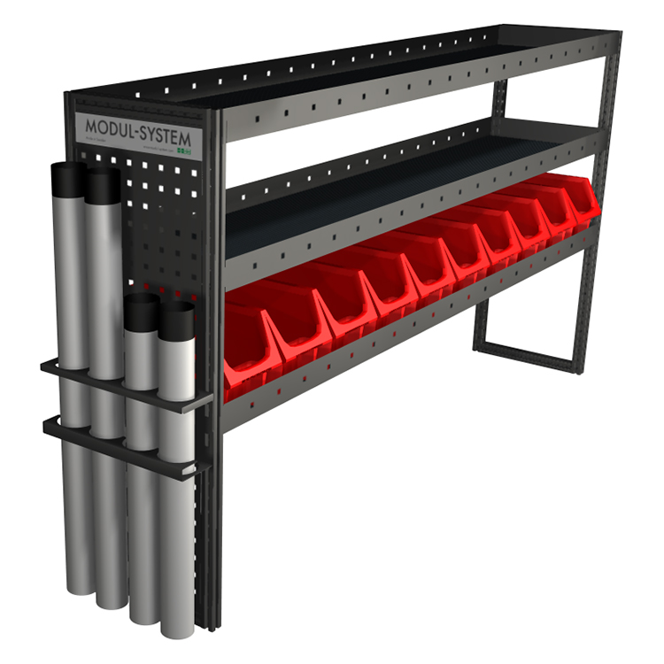 Houder voor 4 buizen, met een max. diameter van 70mm. De houder kan worden bevestigd aan een legbordjuk of tegen de zijwand.