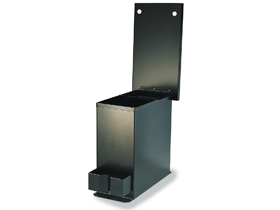 Opklapbaar deksel/tafelblad met bergruimte eronder. Compleet met pennenhouder en twee flessenhouders. Het deksel/tafelblad is bedekt met een grijze viltmat.