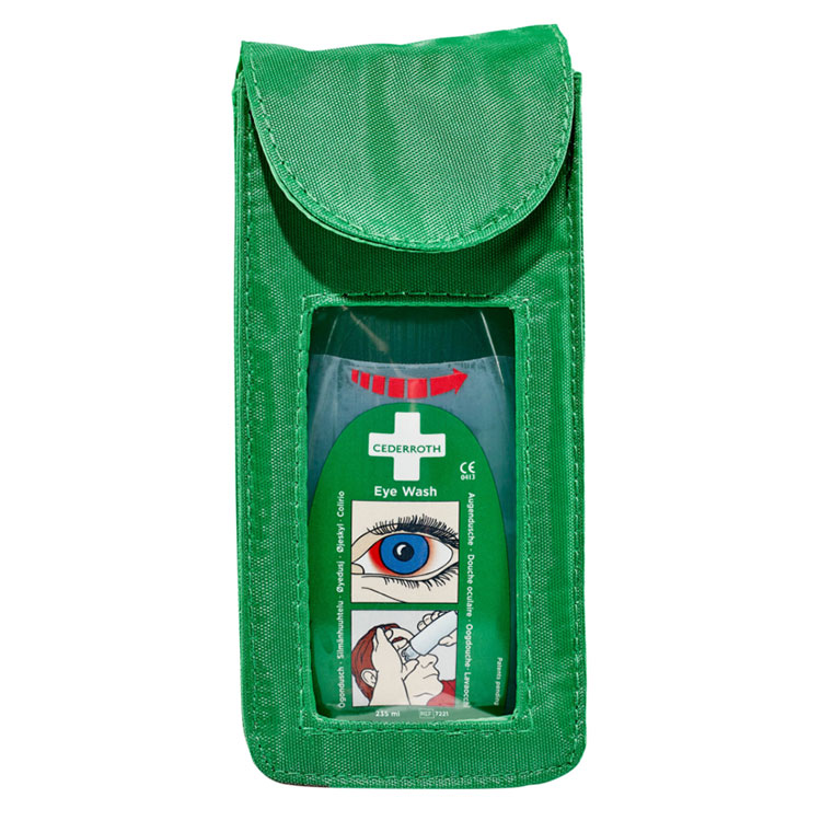Holster van nylon met riemlus. Met de holster kan een flacon Cederroth Oogdouche in zakmodel gemakkelijk aan een riem worden meegedragen.
