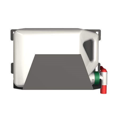 De jerrycan wordt geleverd inclusief houder en kraantje. De jerrycan kan zowel links als rechts in de houder worden geplaatst. De houder kan worden bevestigd aan de zijwand of op een inrichting 324mm diep.