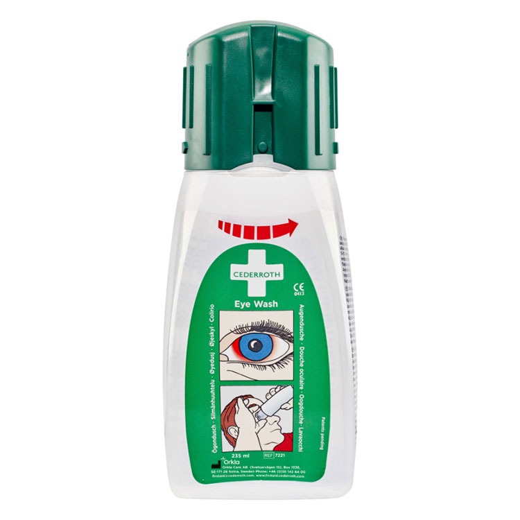 Een gemakkelijk te hanteren flacon met ergonomisch oogbad en royale vloeistofstroom. Snel en eenvoudig te openen. Wordt met een enkele handgreep geopend. Draaien en de flacon is open.