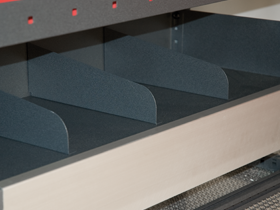 Met het verdeelschot worden legborden met een neerklapbaar front eenvoudig in kleine vakken opgedeeld. De verdeelschotten worden met popnagels vastgezet. Bestemd voor een 324 mm diep en 108 mm hoog legbord.